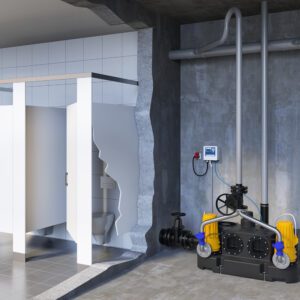 Bombagem de águas residuais de prédios de apartamentos ou habitações unifamiliares/plurifamiliares para grandes alturas de elevação ou longos tubos de pressão. Instalação apoiada em zonas abaixo do nível de retorno.